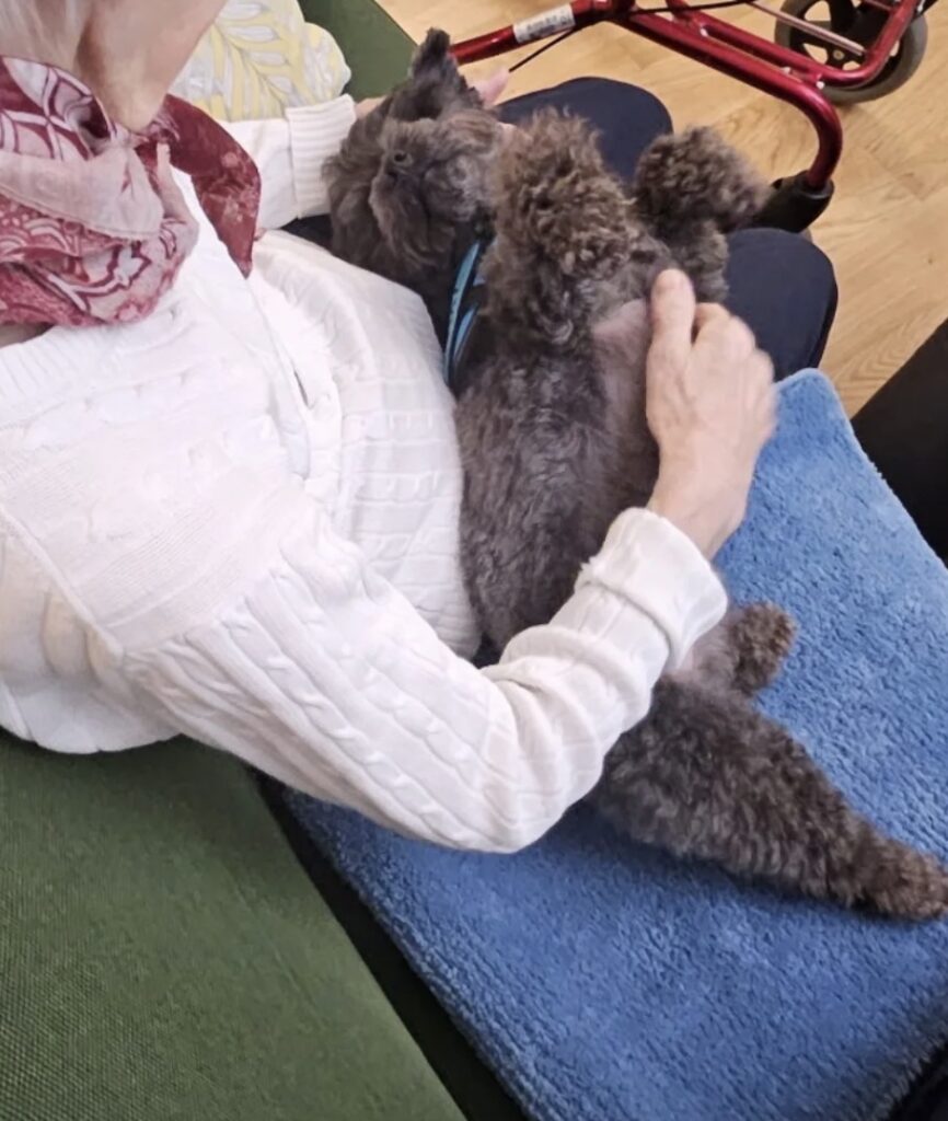 Våra hundar hjälper till att skapa trygghet och lugn, vilket bidrar till minskad ångest och ökat välbefinnande hos dem de möter.